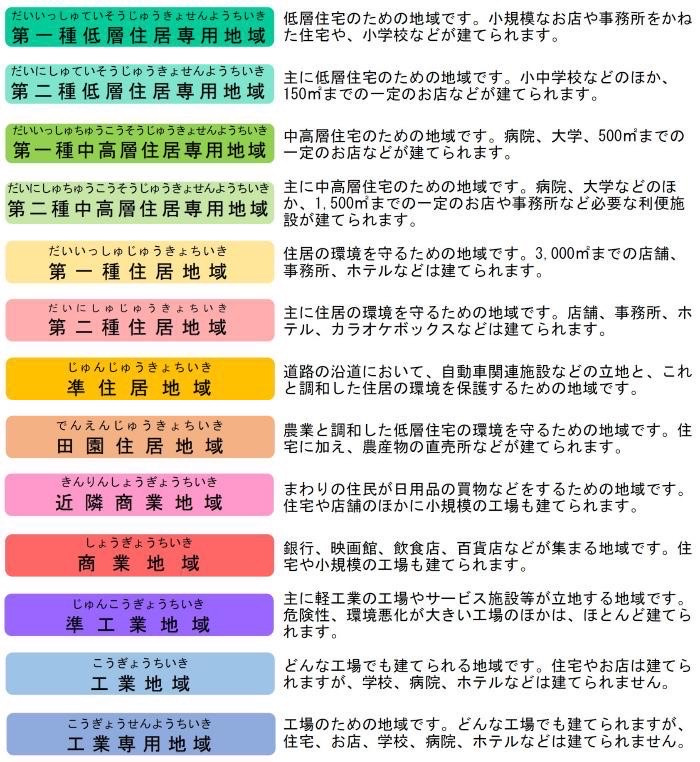 用途地域の種類に関する写真を添付したので是非ご覧ください