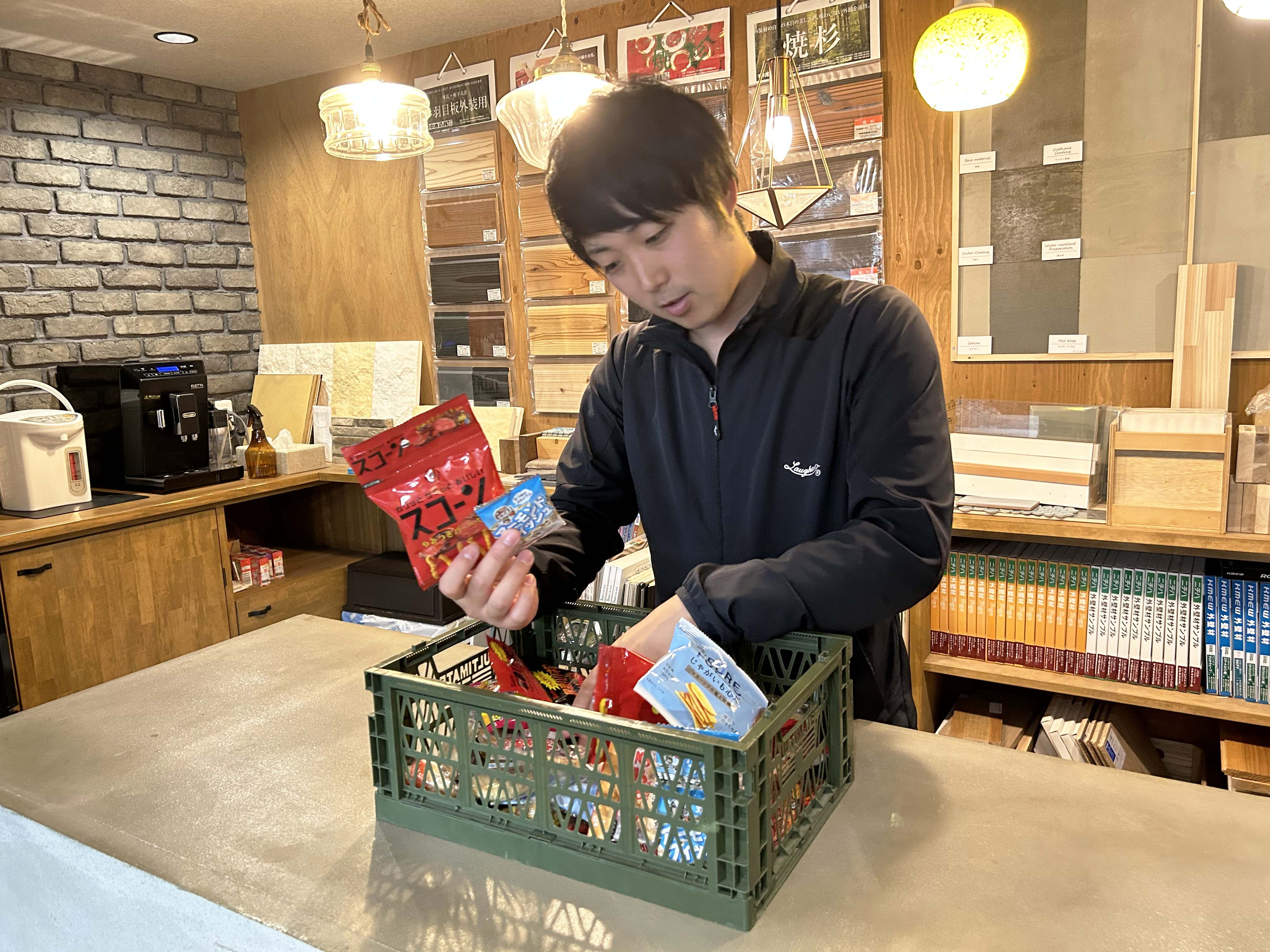 くらすONEではスタッフ用にお菓子ボックスを設置しています。ちょっとひと休憩。