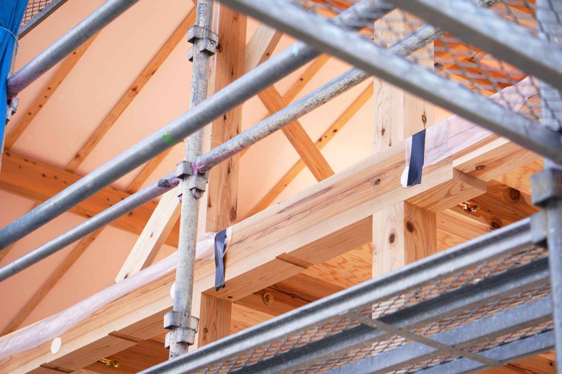 土台・柱・梁などの構造部材を組み上げて建物の骨格をつくる方法で